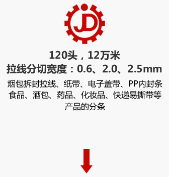 LFT120頭拉線分條機,主要用來生產1萬米煙包、食品、酒包、藥品、化妝品、磁帶、快遞袋等產品的包裝盒或盒袋的拆封拉線。